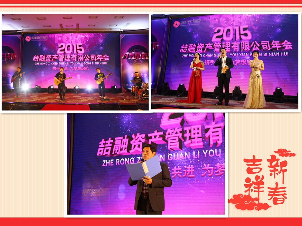 騰盛世歲更替,春滿(mǎn)神州喜滿(mǎn)懷;紫氣滿(mǎn)堂萬(wàn)象新,桃花盛開(kāi)報(bào)春來(lái)。2016年1月16日喆融資產(chǎn)、浙融汽車(chē)有限公司在納德自由酒店舉辦2016年“攜手共進(jìn),為夢(mèng)想啟航”主題聯(lián)歡晚會(huì),總經(jīng)理方志紅、副總陳茂盛及徐敏、各地區(qū)分公司負(fù)責(zé)人和全體員工參與了